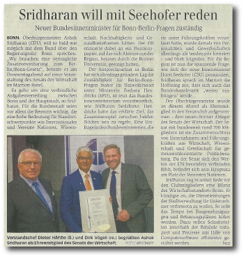 Der Bonner Oberbürgermeister Ashok Sridharan wurde als Ehrenmitglied in den Senatsclub Bonn aufgenommen.