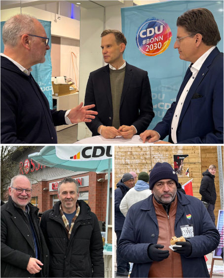 So besuchten Norbert Streveld und Dr. Christoph Brüssel mehrere Bundestagswahlkämpfende verschiedener Parteien in den Wahlkreisen.
